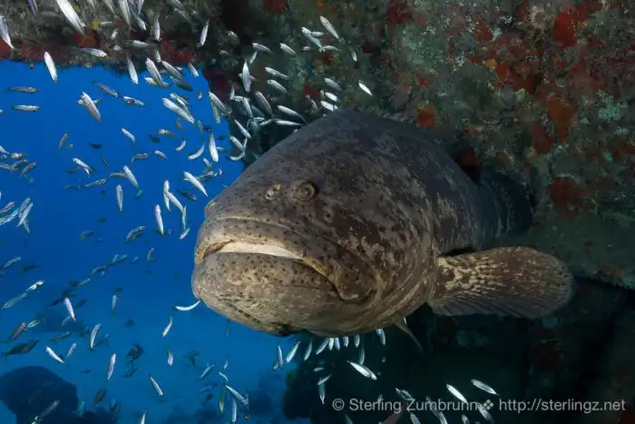 Обитает групер в тёплых прибрежных водах Атлантического океана у берегов обеих Америк и Африки. По жизни — это медленные, флегматичные пофигисты. Большую часть суток они проводят лёжа где-нибудь на отмели, притворяясь камнем. И ведь получается! Пестрый узор в 50 оттенках серого отлично маскирует гигантского рыба.