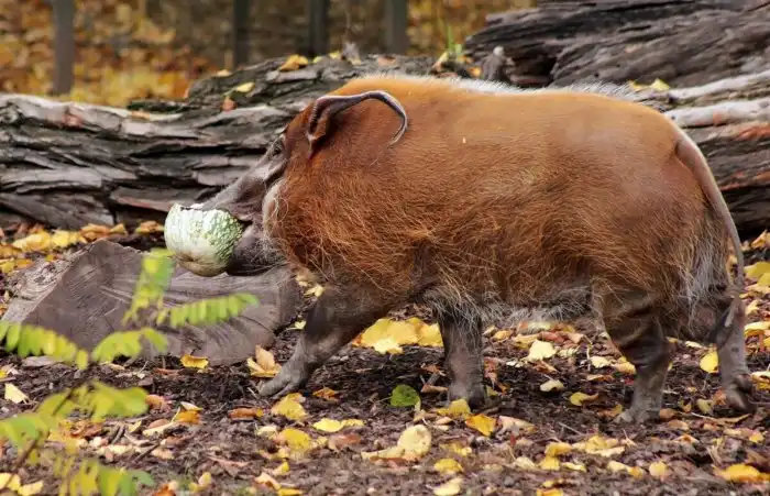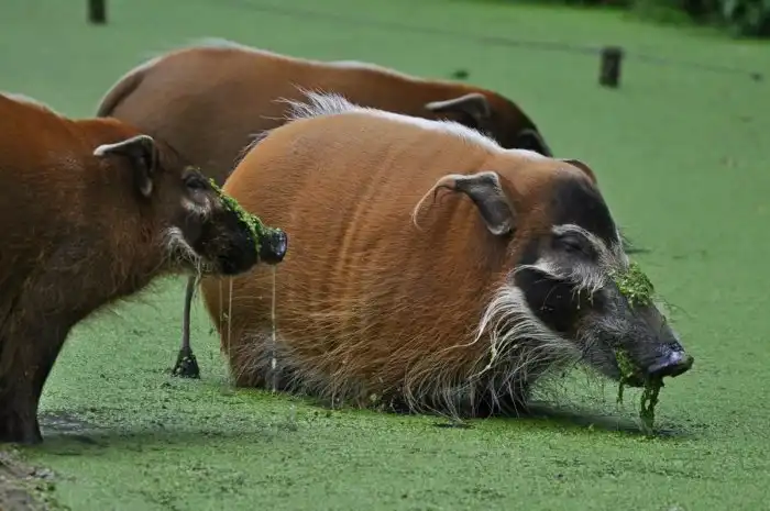 Второе название кистеухой свиньи — речная свинья. Животина очень любит водоёмы.