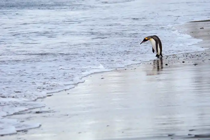 Королевские пингвины боятся воды. Да, их жизнь неразрывно связана с подводным плаванием, но иногда пернатые слишком долго настраиваются на то, чтобы войти в антарктические воды. Они могут часами кружить на берегу. Намерения очевидны, каждый хочет в воду, каждый хочет есть. Вот только никак не решается. С чем связано это явление — не ясно. Но как только в воду нырнёт первый пингвин, следом за ним отправятся и остальные все.