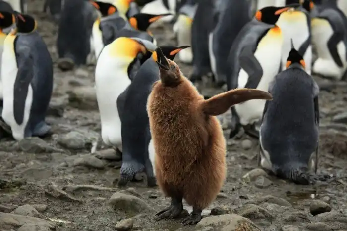 У королевских птиц нет «президента», «премьер-министра» и «парламента». Первобытно-общинный строй! Если кто-то замёрзнет больше остальных, то его пропустят в центр. Птенцов никто не гонит из группы после взросления. А на время брачного периода пингвины превращаются в своеобразных солдат. Идут строем, выстроившись не то по росту, не то по уважению. Интересно, что каждая группа — линяющие, молодые, зрелые — идут отдельно от других.