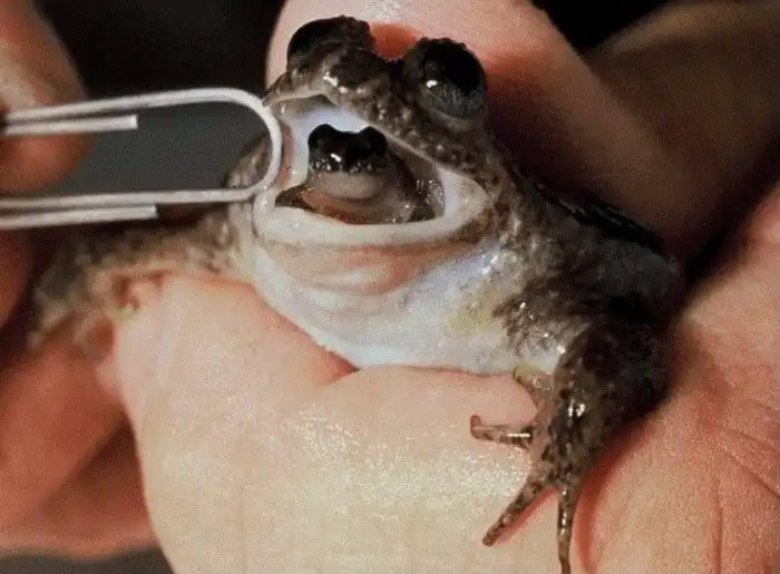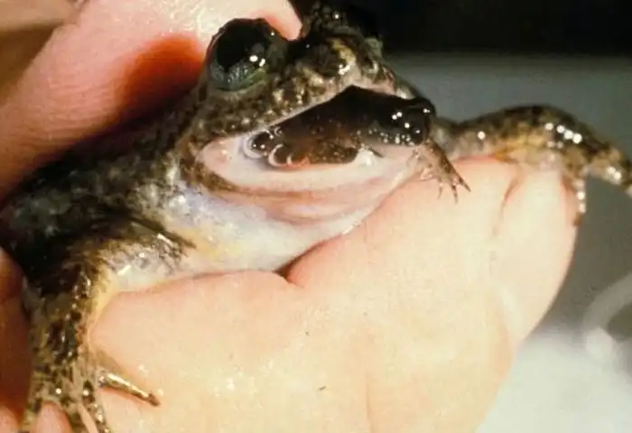 С этого момента и ближайшие 3 месяца лягушка и муху не обидит — она перестаёт есть вообще. В пузе своей мамы малыши пройдут все стадии метаморфозы: от яйца до маленькой лягушки. Мариноваться в желудке своей родительницы они будут до тех пор, пока не превратятся в полноценных маленьких лягушек. Когда малышня была готова увидеть свет, мамаша своих отпрысков... выплёвывала.