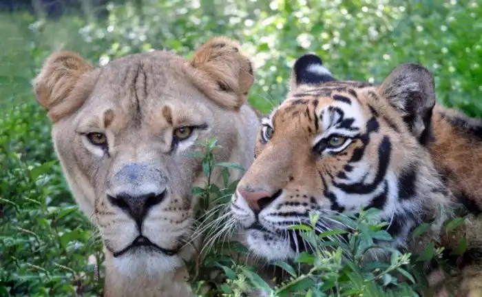 А как будет выглядеть зверь, который родится от союза тигра и львицы? От такого союза родится – тигролев, также известный как тигрон и тион. Тигрольвы одновременно похожи и на львов, и на тигров.