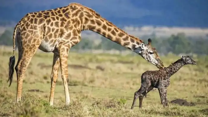 А ведь размножаются жирафы нифига не быстро — на вынашивание уходит 15 месяцев. Да и роды проходят с определёнными рисками — малыш шмякается из мамки с высоты 2 метров! Чтобы не скопытиться в свой же день рождения, детёныш должен упасть не на шею, а на плечи. При таком ударе был бы велик шанс сломать ключицу. Как хорошо, что у жирафа её нет!