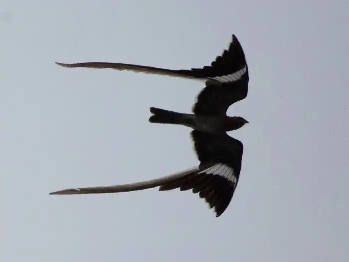 Небольшая птаха, едва набирающая 25 сантиметров длины обзаводится чёрно-белыми вымпелами, которые удлиняют козодоев силуэт до 80 сантиметров! Тут-то птичка и выделяется из толпы одинаковых крылатых. Ну, если вы способны видеть в темноте, животины активничают только когда стемнеет.