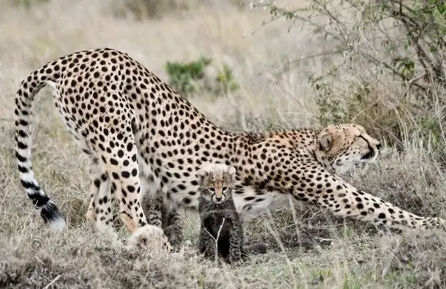 Погоня за гепардом обычно длится меньше минуты и охватывает всего 200-300 метров. На полной скорости гепард делает три шага в секунду, преодолевая семь метров за один шаг. Самки гепардов — одинокие существа и обычно воспитывают своих детенышей в одиночку, пряча их днем и обучая охотничьим навыкам по мере роста.