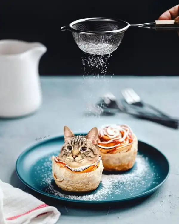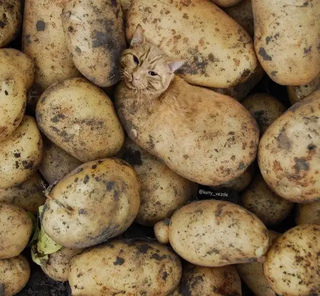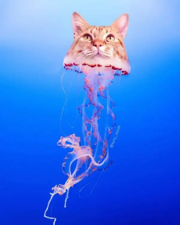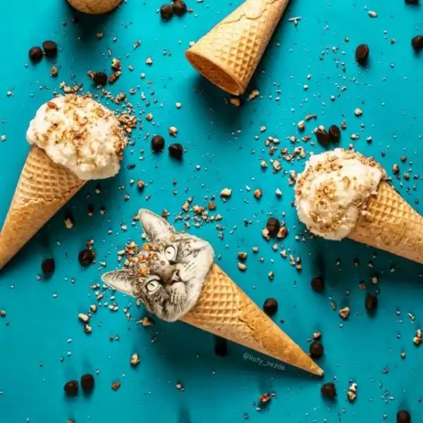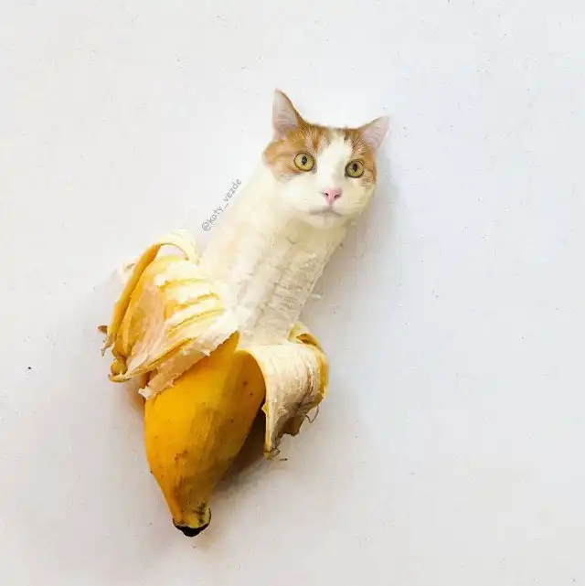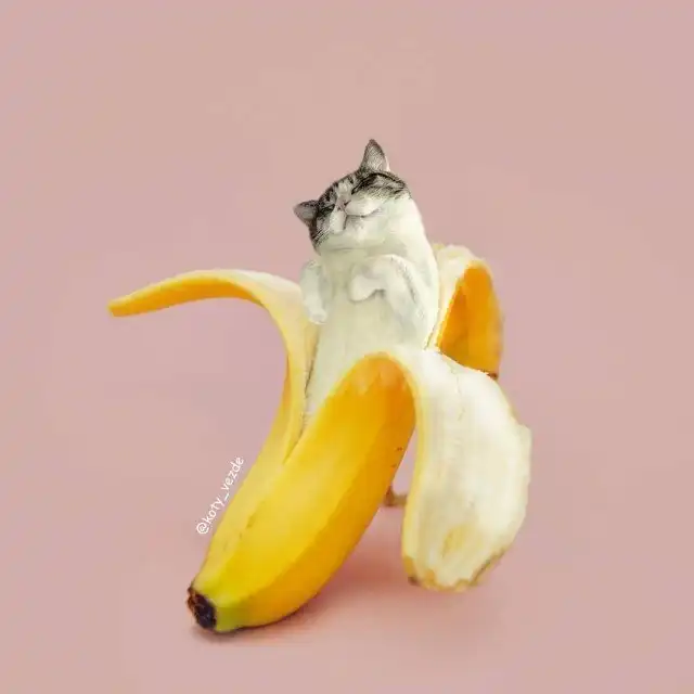 Галина Бугаевская — большая поклонница кошек, и ее Instagram @koty_vezde (“Кошки везде”) может это доказать. Она художница из Москвы, Россия, и добавляет кошачьи морды на все, что только можно придумать: жирафов, рыб, панд, даже съедобные вещи, такие как картофель, булочки и бананы. Звучит как интересный и забавный сон, не так ли?
