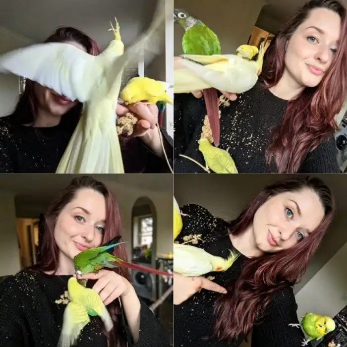 Скорее всего, если вы услышите слова «домашний питомец», то первым делом представите котов и собачек. Но не стоит забывать, что среди любимцев есть не только обладатели усов и шерсти, но и пернатые товарищи! Попугаям свойственно всё то же, что и другим домашним животным — они не упускают возможности похулиганить, незнакомы с понятием личного пространства и точно так же любят и ценят своих хозяев. Вот несколько милых и забавных эпизодов из пернатой жизни.