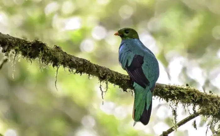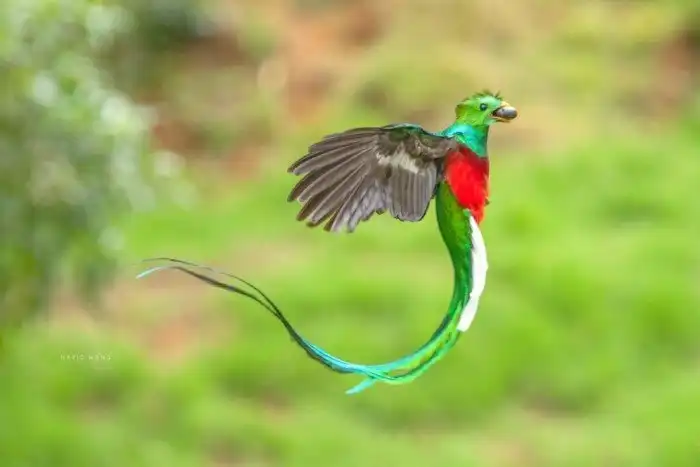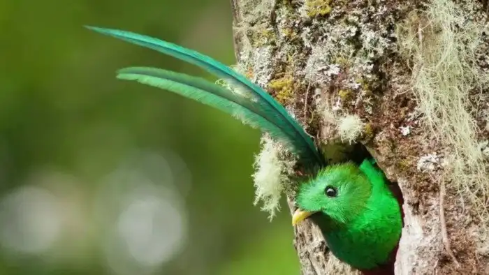 Впрочем и с происхождением у него полный порядок. Квезали, они же кетсали отделились от эволюционного древа птиц 56 миллионов лет назад и входят в маленький, но очень гордый отряд трогонообразных. Все представители отряда предпочитают места потеплее, ну а квезаль решил сушить пёрышки в Центральной Америке: от юга Мексики и почти до Панамского канала.