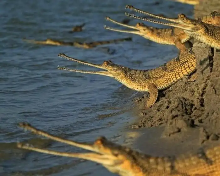 Да, на суше наш герой передвигается с ловкостью сардельки, зато в воде он чувствует себя как рыба. В отличие от большинства крокодилов, гавиал способен находиться в воде в течение нескольких дней. На берег рептилия выбирается лишь для двух вещей: погреться и продолжить свой род.