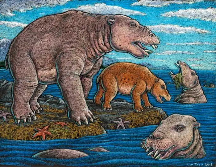 Самим животинам было глубоко наплевать на своё происхождение. Отряд псевдобегемотов появился 35 миллионов лет назад и сразу вышел хорошо. Ну, если придерживаться установки: «хорошего существа должно быть много». Минимальные габариты десмостилий — 2 метра длины и 200 кило веса, а крупнейшие виды были в 2 раза длиннее и в 3 раза тяжелее!