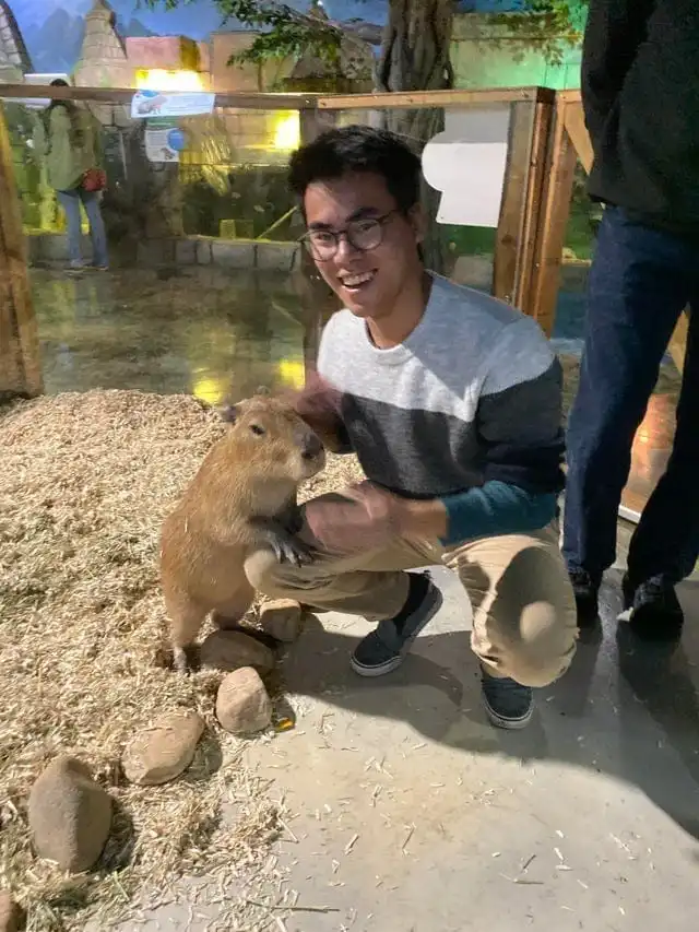 Парень уже 15 лет как обожает капибар, но только сейчас смог её погладить