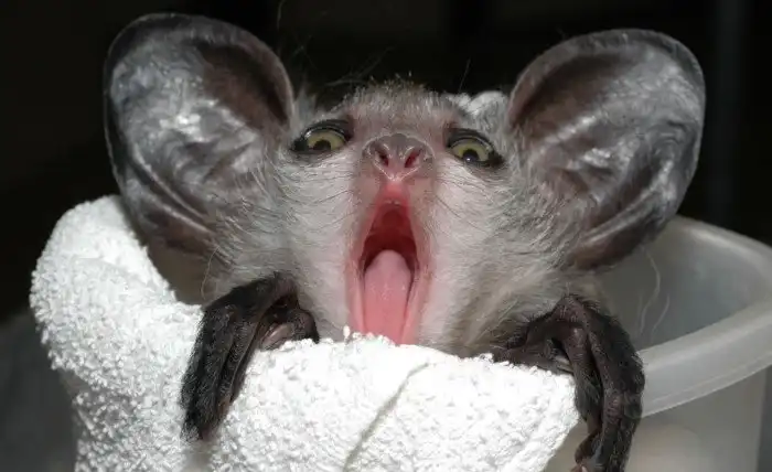 Лорд Волдеморт от мира животных удивительно негармоничен: здоровенные уши, торчащая во все стороны шерсть, выкаченные ярко-жёлтые глаза и длинные тонкие пальцы, один из которых намного длиннее прочих. Фрилансер, в естественной среде обитания, не иначе.