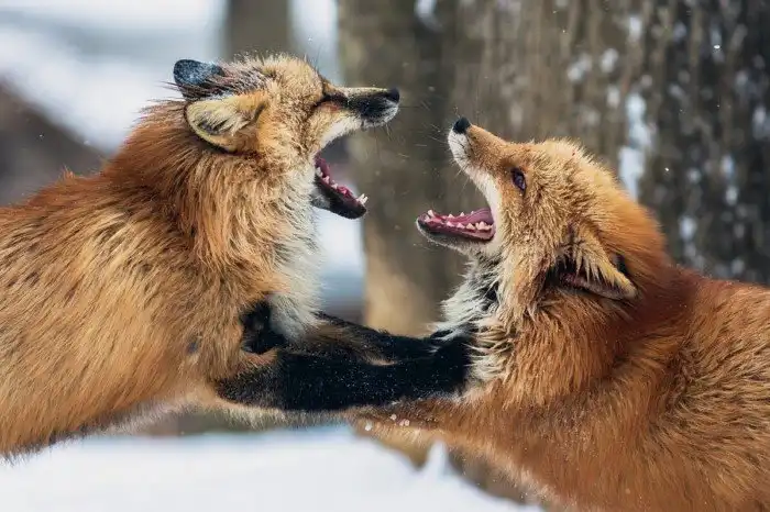 С наступлением холодов молодые особи отделяются от родителей, и уходят на поиски личной территории. Но и великовозрастные лисицы расширяют владения. И совсем не квартирный вопрос их интересует! Им бы увеличить площадь охотничьих угодий, чтобы повысить вероятность удачи. По этой причине лисицы часто пересекаются между собой, что приводит к выяснению отношений. Сниженный функционал после поединка не способствует счастливой жизни.