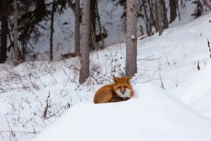 Лисица умеет согреваться. В дополнение к плотному подшёрстку она часто прячется в кокон из собственного хвоста. Основная цель — закрыть от мороза чувствительный нос. Но в тот момент, когда рыжая устраивается на лёжку, она сильно снижает уровень своей наблюдательности. Для обеспечения безопасности лисица полагается на все органы чувств. Ей приходится бдить, напрягая и слух, и обоняние.