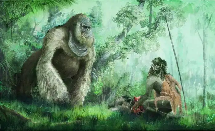 Это самый крупный известный науке примат, живший от 2,0 млн до почти 300 тыс. лет назад на территории Южной и Юго-Восточной Азии. 3-метровая гориллоподобная обезьяна весом до 550 кг, согласно строению зубов, могла питаться как растительной, так и животной пищей.