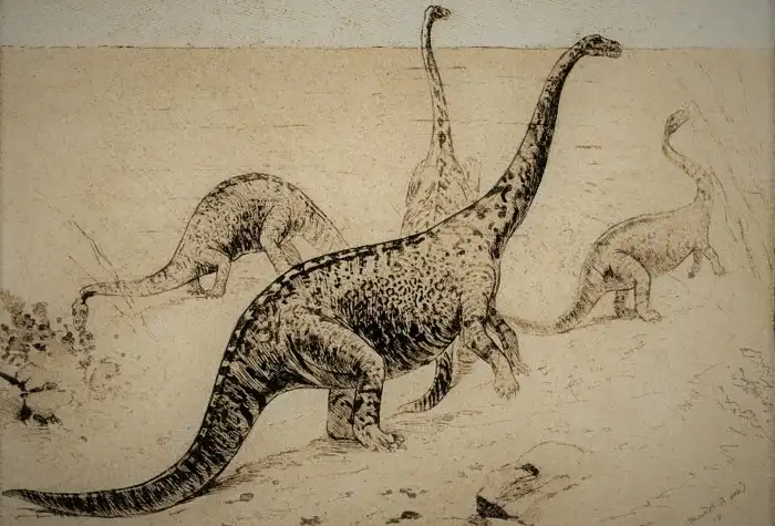 Самый крупный динозавр-зауропод и одно из крупнейших существ, когда-либо топтавших планету. Жил во времена Юрского периода и погиб в числе других динозавров 65 млн лет назад. Титан был растительноядным, достигал 25 метров в длину и весил не менее 70 тонн.