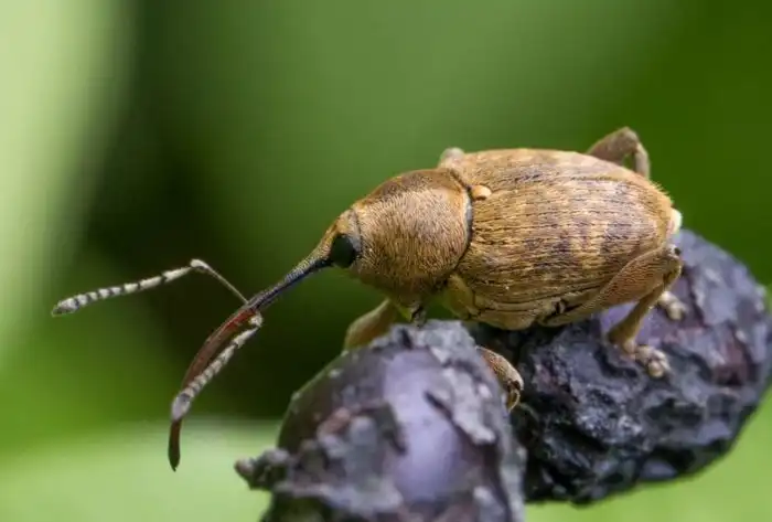 Простите, с таким именем каламбур сам напрашивается. Плодожил, или ореховый долгоносик, хоть и насекомое, но похож на таковое только количеством лапок. Да и с размерами в 6-9 мм ни на что большее претендовать не приходится. Но типичной букашкой его точно не назовёшь.