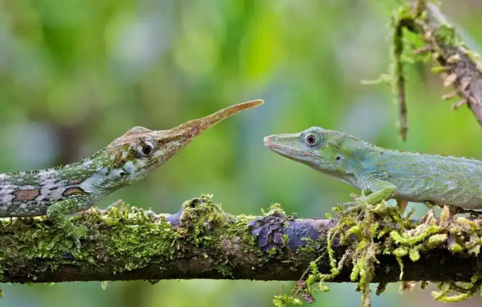 К счастью, ящер сам вылез на свет в 2004 году, и с тех пор появляется в прицеле камер 2-3 раза в год. Мы даже умудрились собрать на неё кое-какое досье. Правда, ради этого пришлось истоптать высокогорные субтропические леса Эквадора вдоль и поперёк. Видите ли, мы до сих пор не в курсе, почему анолиса находят настолько редко. Возможно, их крайне мало, а, может, во всём виновата высококлассная маскировка. Ящерки длинной в 15 сантиметров умудрились собрать фулл-хаус по камуфляжу.