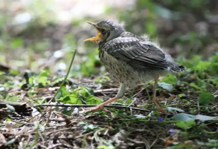 Вторая типичная ситуация — слётки. Это птенцы, которые уже вылетели из гнезда, но ещё не научились полноценно летать и самостоятельно добывать пищу. Первое время на земле их докармливают родители, поэтому Ваша помощь им, скорее всего, не требуется.