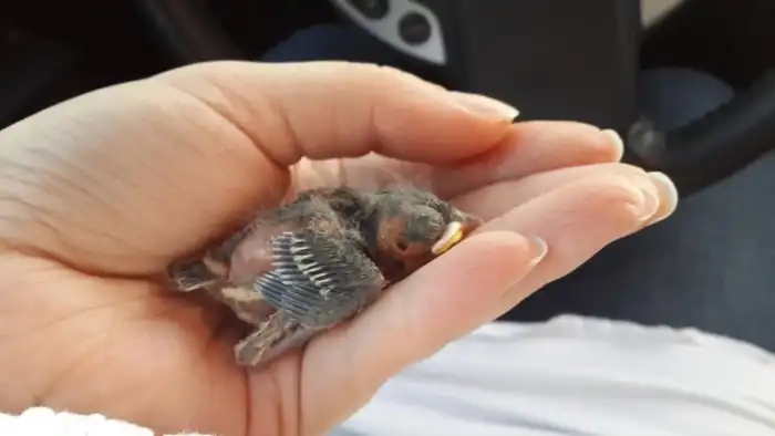 Если слёткам помощь не нужна, то голым и слепым птенцам помощь необходима. Забирать домой его не нужно — скорее всего, птенец выпал из гнезда. Поищите в окрестности гнездо и аккуратно верните малыша на место.