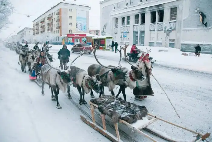 Это выглядит как мем из 2010-го, но на севере реально наряду в автомобилями таксуют оленьи упряжки. У меня сослуживец, живший в Нарьян-Маре, показывал фотку местного Uber'а мощностью 3 оленьих силы.