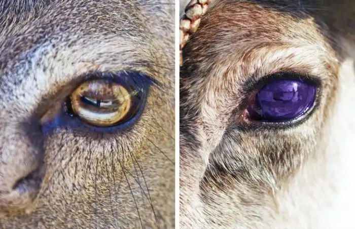 А ещё северный олень — тот самый парень, который носит тёмные очки посреди ночи. Глаза животины меняют свой цвет в зависимости от времени года. Летом они золотистые, а во время долгой полярной ночи становятся тёмно-синими и позволяют улавливать ультрафиолет. Поэтому рогатый прекрасно видит даже в темноте