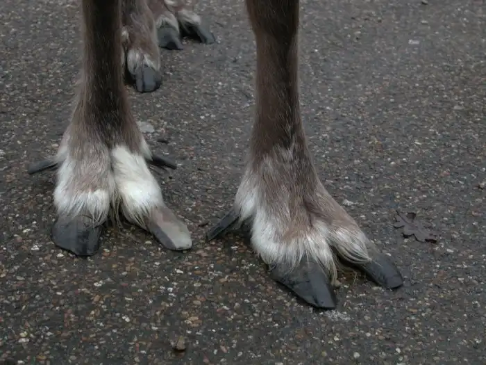 Кстати, о копытах. На ровной поверхности олень в них выглядит, как клоун на манеже. А всё потому, что олень знает физику: чем больше площадь опоры, тем меньше давление на грунт.