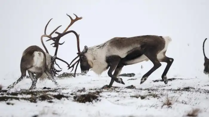 Северный олень, или карибу, видимо, решил смотаться на заработки на вахту. Только что-то засиделся на пару миллионов лет. Не, ну а что? На севере платят больше, пенсия повышенная, в стаж год идёт за два... Карибу на севере так понравилось, что он оккупировал его полностью. Нет, серьёзно — ПОЛНОСТЬЮ. Его ареал простирается на ВСЮ сушу примерно севернее Сыктывкара.