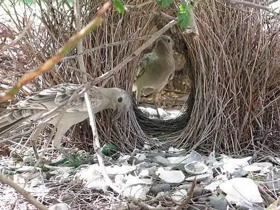 Птичья беседкаБолотные птицы известны тем, что строят сложные сооружения, чтобы привлечь интерес самки, и даже украшают свои беседки множеством разноцветных предметов, которые, по-видимому, выбираются и выставляются напоказ за их эстетическую привлекательность.