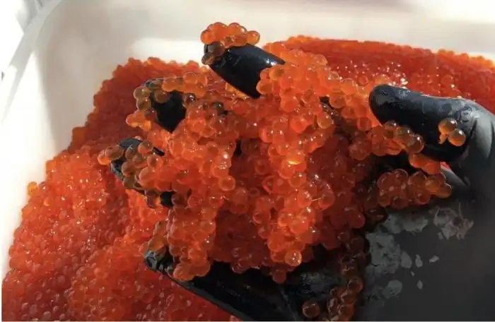 Кстати, мясо чавычи малиново-красное всегда. Оно жирное (около 8 грамм — 11-13%), нежное и восхитительно вкусное. Кроме того, оно богато витаминами А, С, Е, К и насыщено ценными микро- (цинк, марганец, железо, селен, медь) и макроэлементами (кальций, магний, натрий, калий, фосфор). По пользе для организма мясо чавычи вне конкуренции среди других видов лососевых рыб. Но особенно ценится среди гурманов икра — самая крупная среди всех лососей. Вкус у неё выразительный, нежный, с небольшой остринкой без горечи. Что, уже потекли слюнки?