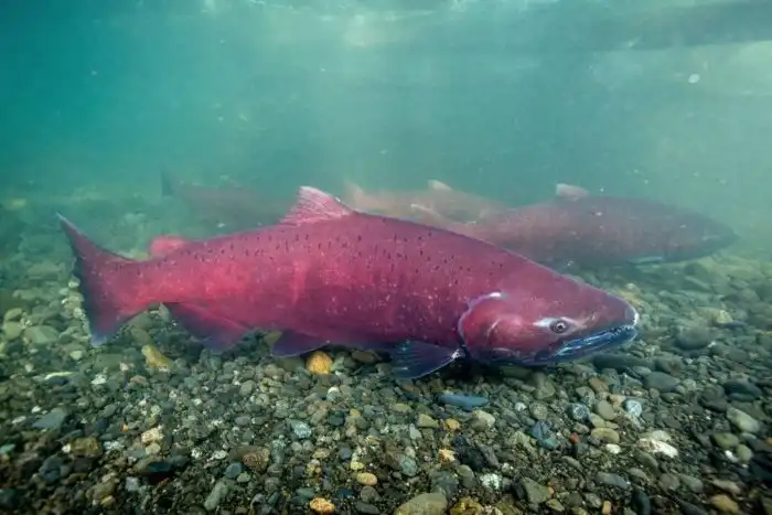 Но даже суровым северным рыбам не чужды нежные чувства. Сезон размножения у чавычи наступает летом. «Князь лососей» относится к анадромному типу рыб, для нереста он мигрирует из моря в пресные водоемы. Как и любая особа голубых кровей, чавыча рыба привередливая — угодить ей тяжело.