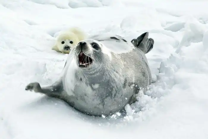 Детишки появляются на свет в небольших лунках и сильно напоминают мягкий и нежный зефир, за что и прозваны бельками. Пушистые комочки беззащитны, их мех даже не приспособлен к плаванию. Но на мамином молоке малышня отрастит себе водолазные костюмы всего за 2 месяца! И, если повезёт, новая шёрстка прослужит им аж 40-50 лет. Но, скорее всего, животинка погибнет раньше.