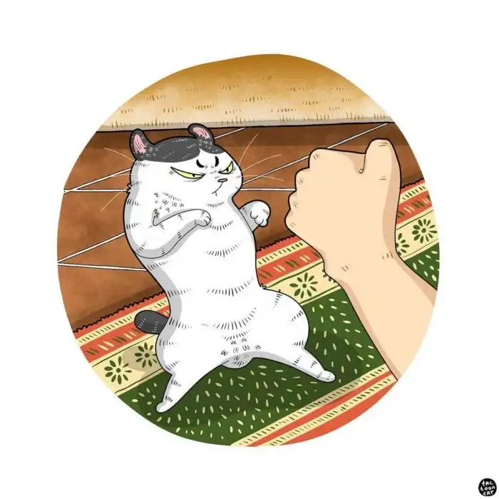 У котов есть особая способность легко попадать в мемы. Хотя, с другой стороны, в этом нет ничего удивительного, ведь коты органично совмещают в себе милоту и наглость, грациозность и неклюжесть, умный взгляд и дурашливость. Художник из Индонезии Кинг Роки не может пройти мимо смешных фото с ними. Он перерисовывает мемы, и вот что у него выходит: