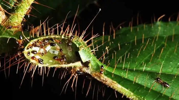 Небольшие, от силы 3 миллиметра в длину, мураши презирают честную конкуренцию, они за монополию. Муравьи впрыскивают кислоту в любой зелёный росточек, листик или палочку, которые находят на своей территории. Зачем? Чтобы защитить свой дом — дерево дироя.
