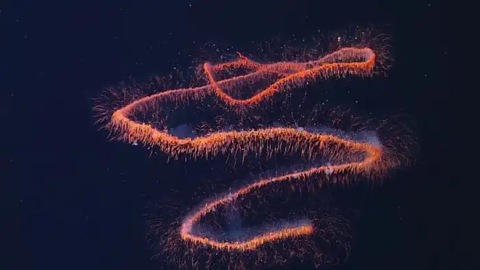 Вблизи каждая сифонофора походит на светящуюся вермишельку длинной до 40 метров. Это на 10 метров больше синего кита! Такие размеры автоматом превратили бы нашего героя во второе по длине живое существо на планете. Но есть одно но. Сифонофора — это колония из тысяч маленьких животин.