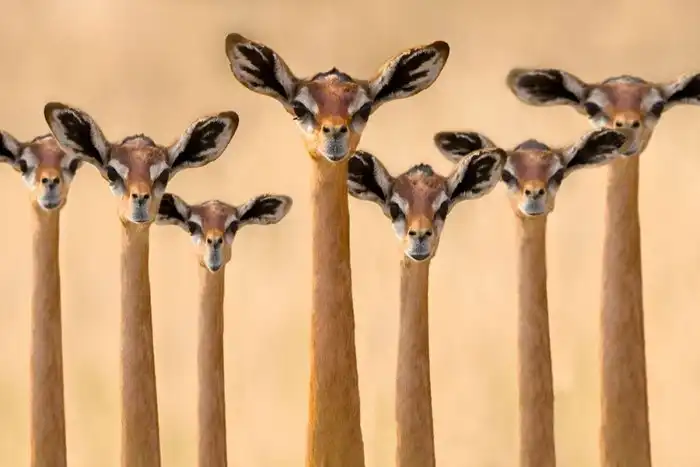 Дальше — проще. Сначала вы попадёте в стаю к самкам и молодым самцам. Там довольно комфортно — ходишь себе вместе с остальными худенькими антилопами да наслаждаешься жизнью. Проголодался? Ну так подойди к дереву, встань на задние лапы и перекуси зеленью. И нет, тебя не спалят, все геренуки так делают!