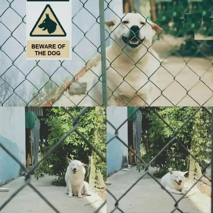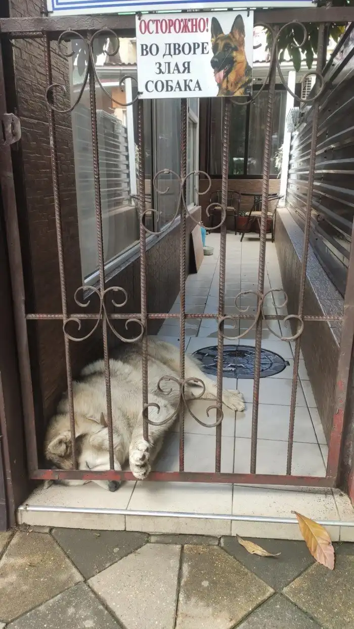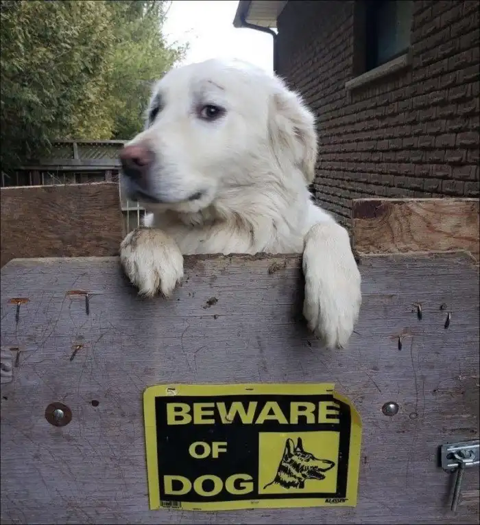 Табличку «Осторожно, злая собака» можно увидеть на большом количестве заборов и других оград частных территорий. Но везде ли они подразумевают реальное наличие на участке огромного злющего пса? Отнюдь нет. В интернете есть множество забавных фотографий, на которых происходит слом ожиданий, так как за табличкой скрывается не совсем то, о чём мы могли бы подумать.Во-первых, собака может быть не злая, а очень даже славная, дружелюбная или просто очень маленькая. Размером с саму табличку. Во-вторых, это может быть вообще не собака. Тут всё ещё интереснее!
