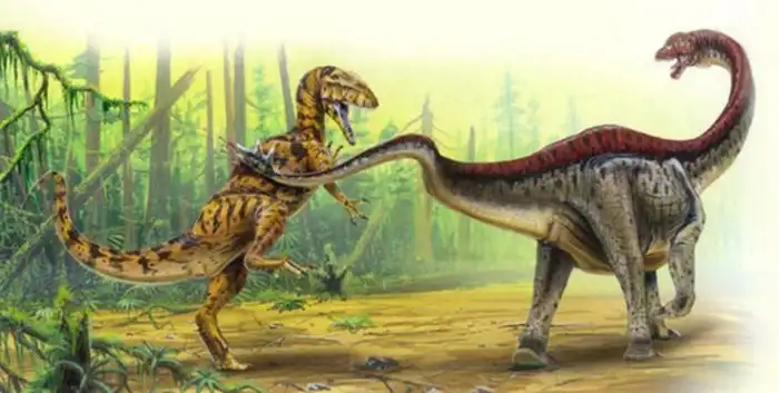 Но это не помешало шунозавру стать успешным! В середине юрского периода они были самыми популярными завроподами Индокитая. Их кости составляют примерно 50% находок в этом регионе. Но был у такой стратегии и минус — относительно маленькие размеры не являлись надёжной защитой от хищников. Впрочем, самих динозавров это слабо волновало, ведь они всегда носили с собой холодное оружие.
