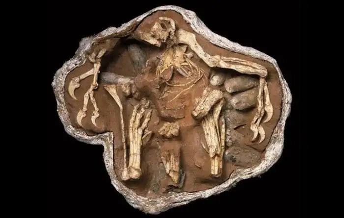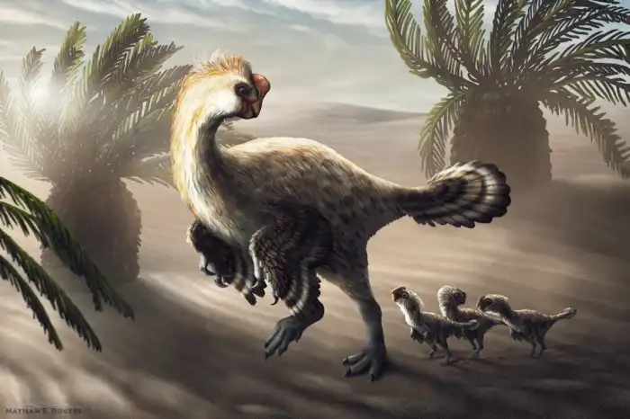 Даже детей читипати воспитывал, как настоящая наседка. В 1995 году перед палеонтологами предстала трогательная картина: гигантская мама (или папа) читипати «обнимает» крыльями свою кладку. Из современных животных так делают только птицы.