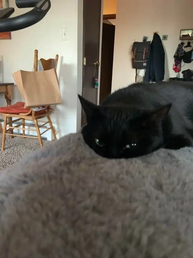Я повредила ногу незадолго до Рождества. Лучше не становится, и моя кошка очень заботится обо мне. Вот где она любит лежать, нежно положив голову прямо на мою травмированную ногу.
