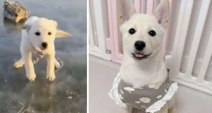 Этого щенка привязали к камню и оставили на замерзшей реке. Его спасли, и нашли для него любящий дом!