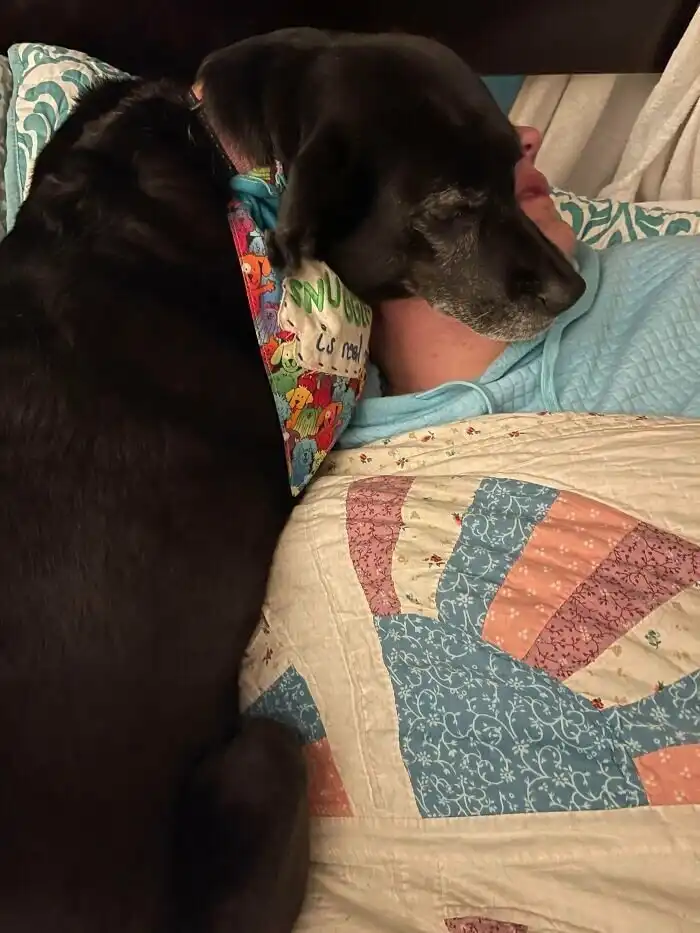 "У моего мужа температура, и вот как его успокаивает наша собака, которую мы взяли из приюта"