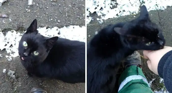 "Я где-то год подкармливал эту кошку, и она всегда меня встречала. Теперь я решил, что пора забрать ее к себе. Добро пожаловать домой, красотка!"