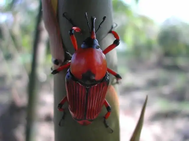 Увидел на огороде этого товарища? Твои действия?У бамбукового долгоносика нет защиты, да и сражаться они не умеют. Из вооружения у жука только коготки, что прекрасно цепляются к шероховатым поверхностям, да маленький ротовой аппарат на длинной головотрубке. Есть лишь одно живое существо, для которого долгоносик представляет опасность — это бамбук.