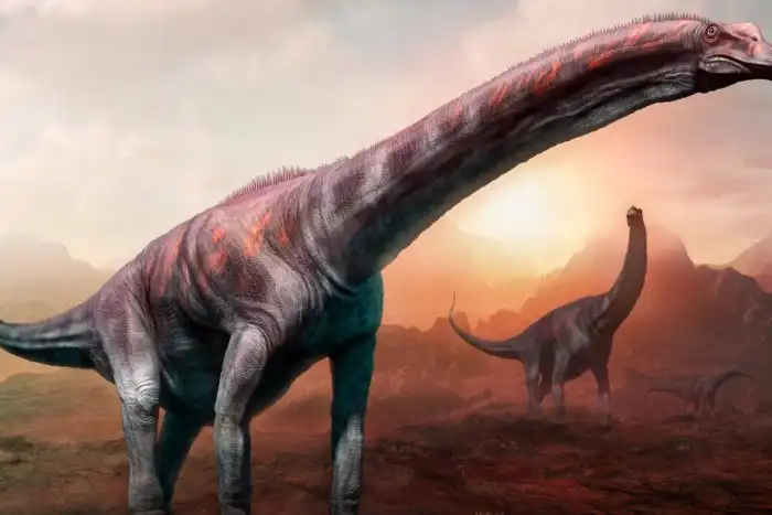 20-метровый титанозавр, возможно, самый крупный динозавр, когда-либо существовавший на планете. Возраст находки оценивается в 140 миллионов лет.