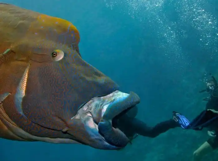 Иронично, что рыба-наполеон по размерам больше, чем сам Наполеон, но она напрочь лишена его воинственной натуры. Животина флегматично бороздит коралловые рифы Красного моря и тропических регионах Индийского и Тихого океанов.