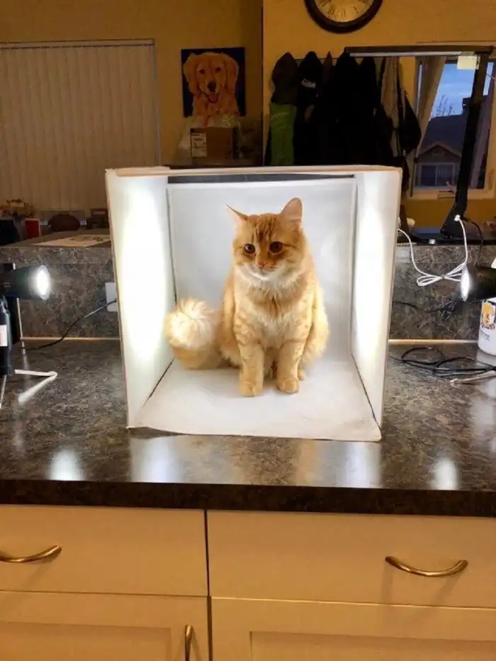 Если кот в восторге, то его не остановят рабочие процессы, такие как фотосъемка товаров.