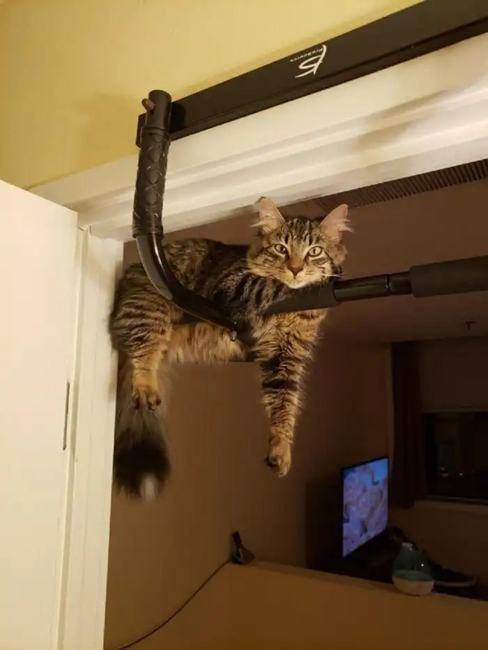 Если нет желания сегодня подтягиваться, то всегда можно сказать: «Турник занял кот!»