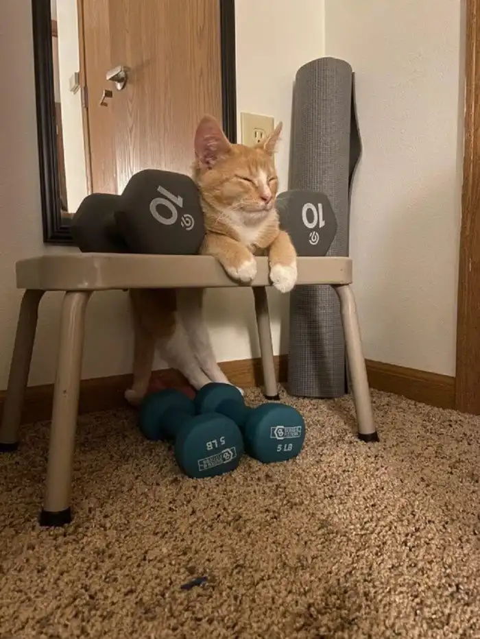 Чем этот котик хуже 10-килограмовой гантели? Его тоже можно поднять, 3 подхода по 15 раз, и накачать трицепс.