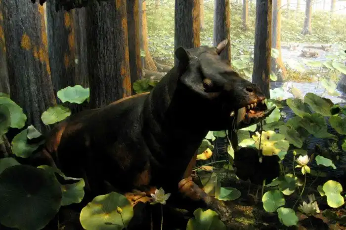 Наш путь лежит в эоцен. Динозавры откинули лапти меньше 10 миллионов лет назад, и млекопитающие только начали занимать экологические ниши рептилоидов. В этом новом мире наша доисторическая псевдокорова стала гигантом: метр роста, 500 кило веса! Да, по современным меркам — захудалый титан. Но 50 миллионов лет назад справиться с такими габаритами не мог ни один хищник!